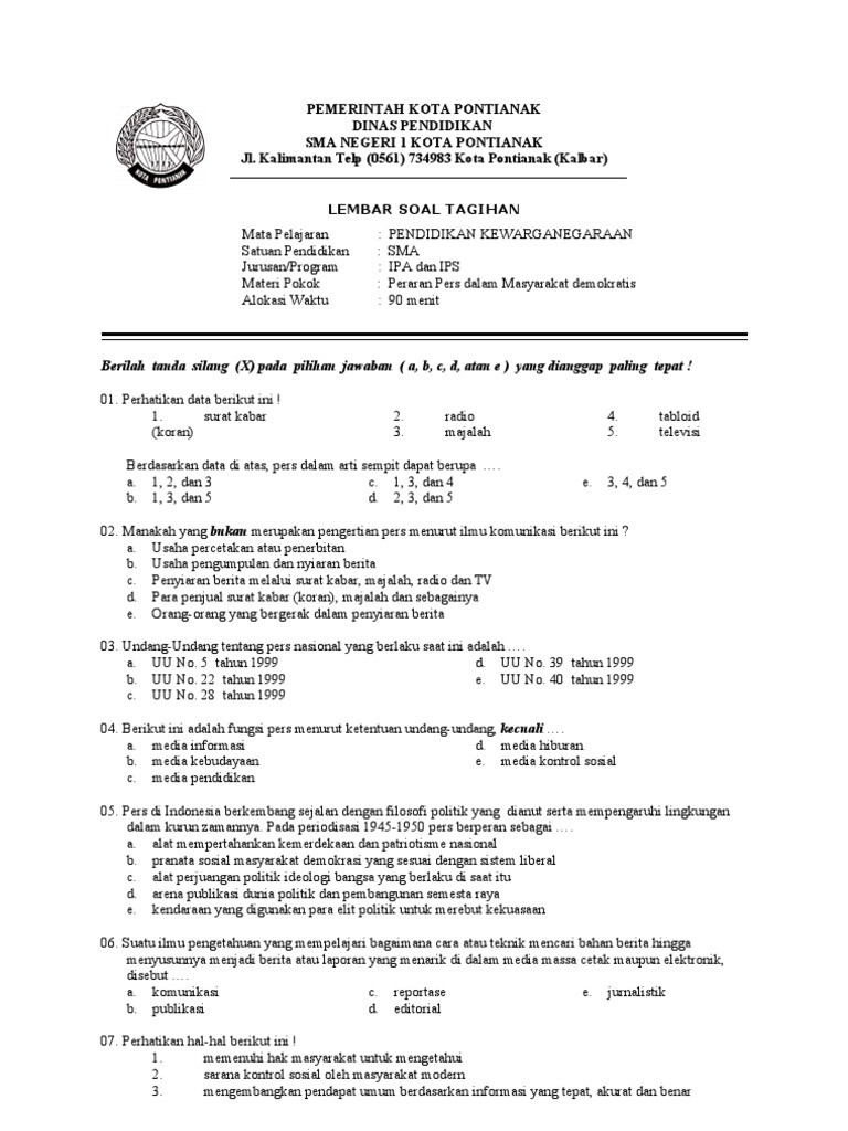Untuk mencetak semua halaman naskah maka pada menu print pilihannya adalah … a. Download kunci jawaban dan soal soal uts pkn kelas 10 sma x2f ma semester 2 terbaru dan terlengkap ulanganharian com kunci sma smp. Saya sebagai guru pkn smk di daerah sangat terbantu dengan adanya kumpulan soal ini pak, mudah mudahan. Dalam suatu gedung pertunjukan terdapat 9 baris kursi. Adanya kebebasan untuk bekerja c. Cara menjawab quiz online pkn kls. Bawa bola lebih dekat ke keranjang lawan d. Kumpulan latihan soal akm untuk sd/mi, smp/mts dan sma/ma/smk kali ini untuk level 6 jenjang sma kelas 11 dan 12 semoga bermanfaat. Silabus ialah perangkat pembelajaran yang sangat berarti bagi seorang guru karena lewat perangkat pembelajaran silabus sehingga kita bisa mengenali materi. Soal leveling pkn (1,2,3) leveling soal pkn. Latihan soal pkn kls 8 bab i (ideologi pancasila). Pancasila sebagai ideologi terbuka 1. Berilah tanda silang (x) huruf a, b, c, atau d di depan jawaban yang paling tepat!